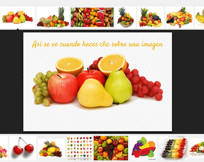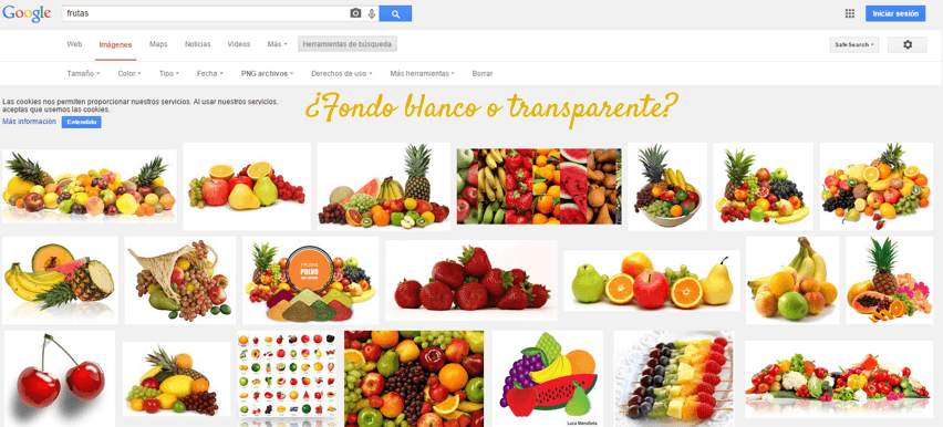 Es decir, Google solo buscará imágenes de fruta en formato PNG que precisamente es el formato que contiene los fondos transparentes.